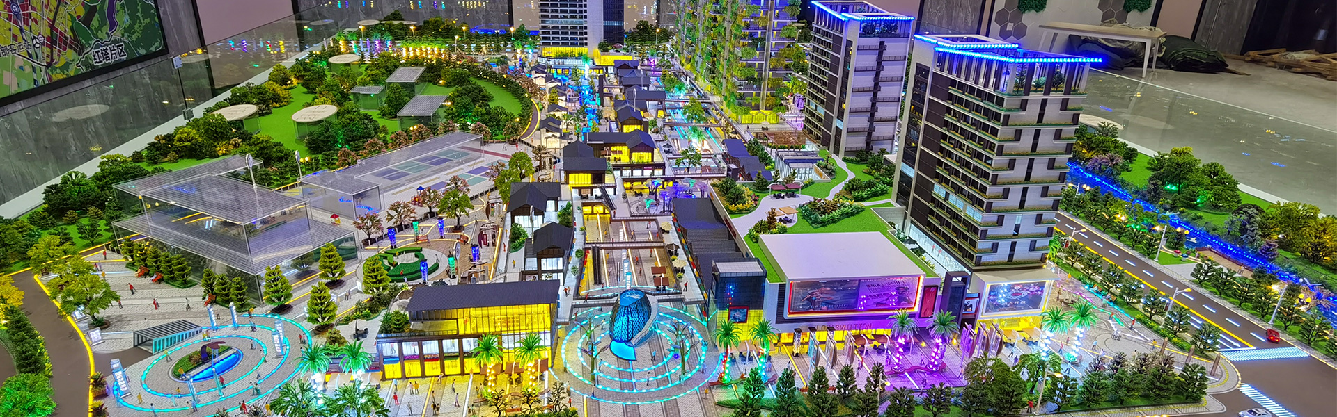 采用在3D數(shù)字影像互動沙盤模型,城市綜合體數(shù)字燈光編程系統(tǒng),以及高科技仿真光影水系幾大核心技術(shù)。